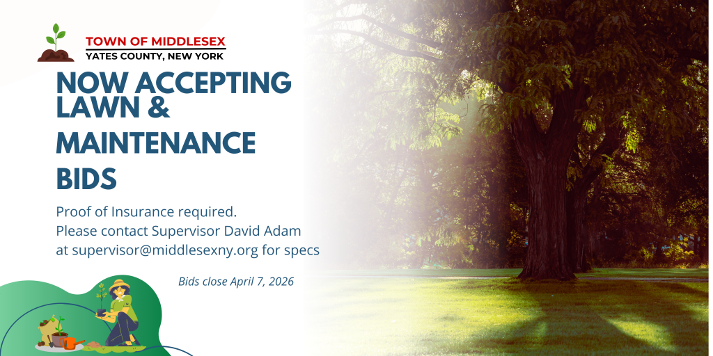 Welcome to the official web site of the Town of Middlesex New York. This is your 24-hour resource providing information about Town departments, services, staff as well as general area information and helpful resources.